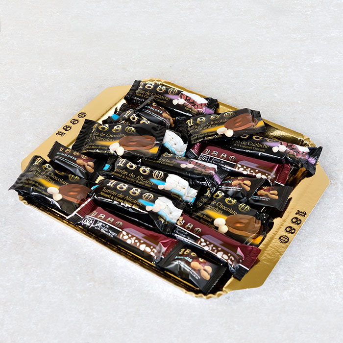 This is the best selling product from 1880. A delicious turron and chocolate assortment consisting of more than 35 individually packaged servings and presented on an elegant 1880 tray ready to serve at the table.