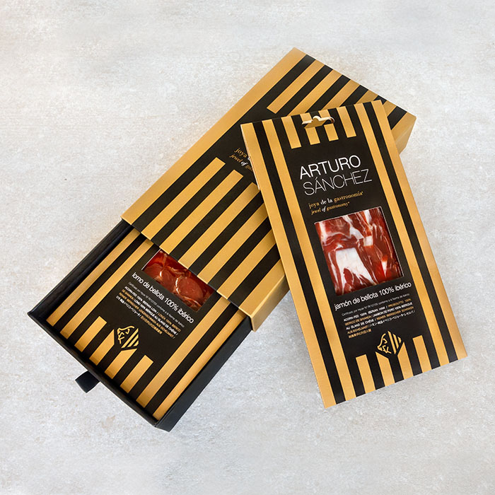 To prepare and serve this exquisite tasting box, take your time and open all the packs and allow them to breathe for 30 minutes before serving. The Arturo Sánchez Ibérico Tasting Box includes: