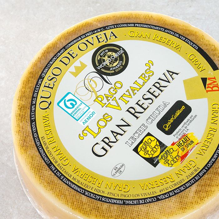 Made from 100% raw sheep’s milk, Pago Los Vivales Gran Reserva is a Zamorano cheese matured for over 16 months, giving it a uniform and firm texture that cuts cleanly, with small mechanical holes. It still has a melt-in-the mouth texture despite its age. It has a strong, elegant and aromatic flavour that is very long lasting.