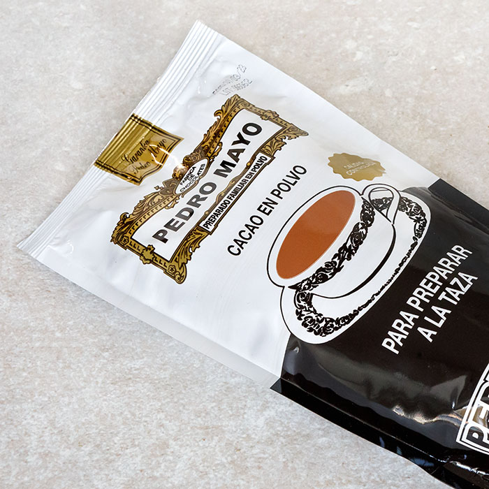 Pedro Mayo Hot Chocolate powder is the authentic hot chocolate to serve with churros. Each bag of 800g makes 4 litres of hot chocolate which is really easy to make. To serve 4 people, simply heat 500ml of milk in a sauce pan, once hot, add 100g of Pedro Mayo hot chocolate powder, stir well and bring the mix to the boil. Reduce the heat and allow the hot chocolate to thicken before serving. It only takes a few minutes, it is that simple!