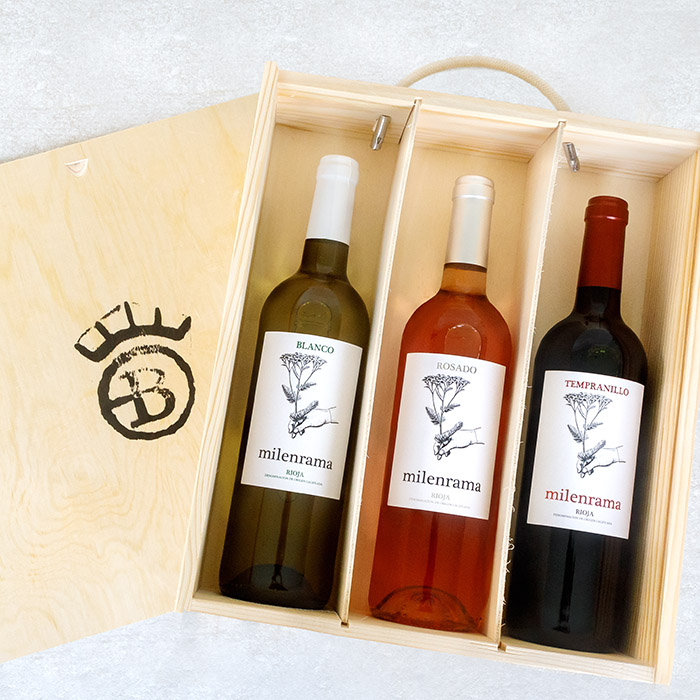 This selection of Rioja wines comes in a Basco branded wooden box and contains a selection of wines by Milenrama. The wine box includes: