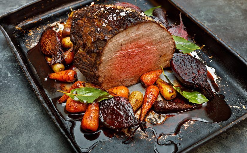 Roast Wagyu Beef with Shallots, Carrots, Beetroots and Rioja Red Wine Sauce