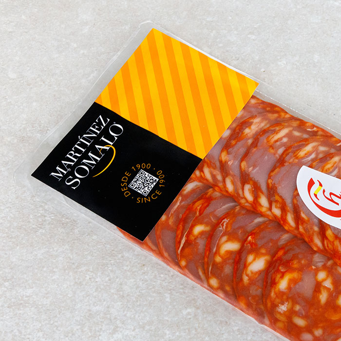 Our Sliced Somalo Chorizo Vela Picante is a delicious slicing sausage made in La Rioja with a smoky, garlicky flavor. Somalo Chorizo Vela is made using thick cuts of pork, creating a leaner, meaty sausage that has become a Basco favourite.