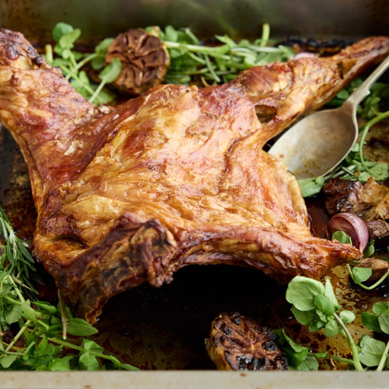 Traditionally, milk-fed lamb is roasted in a wood-fired oven with salt, oil and a touch of water to allow this prime cut to speak for itself and amaze the most discerning palate. The result is an incredibly soft textured meat, crispy golden skin that is creamy in texture, melting in the mouth with some light gamey notes.