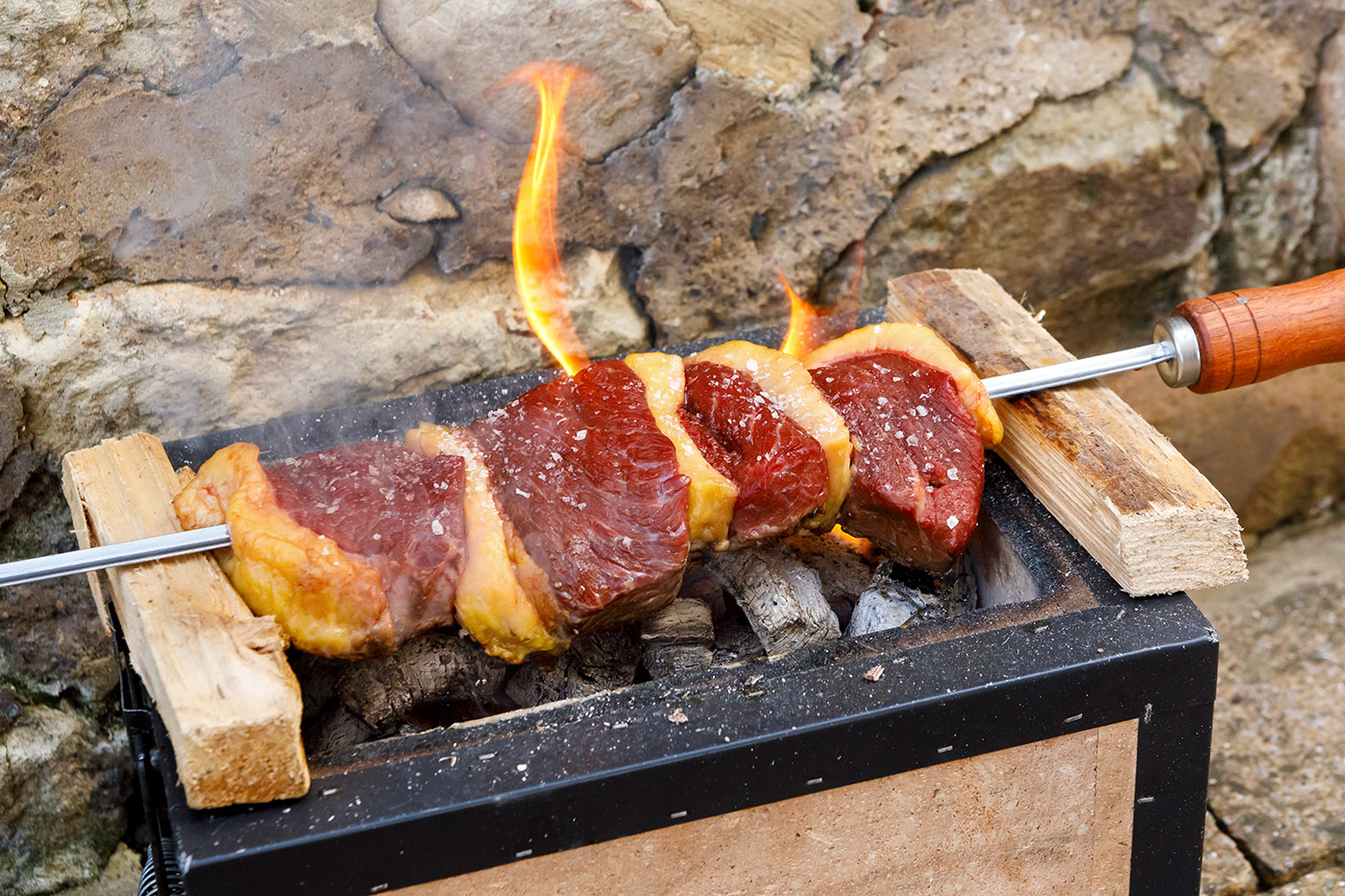 A classic South American dish of picanha beef cooked rodizio style on large skewers over charcoal. The barbecue picanha brings a touch of excitement to the table when carving it from the skewers. The picanha beef is paired with a zingy salsa verde that provides acidity and freshness, whilst the celeriac remoulade brings a touch of creaminess for the ultimate barbecue dish.