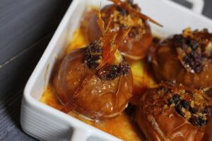 Baked Apples with Raisins and Rum Caramel Sauce
