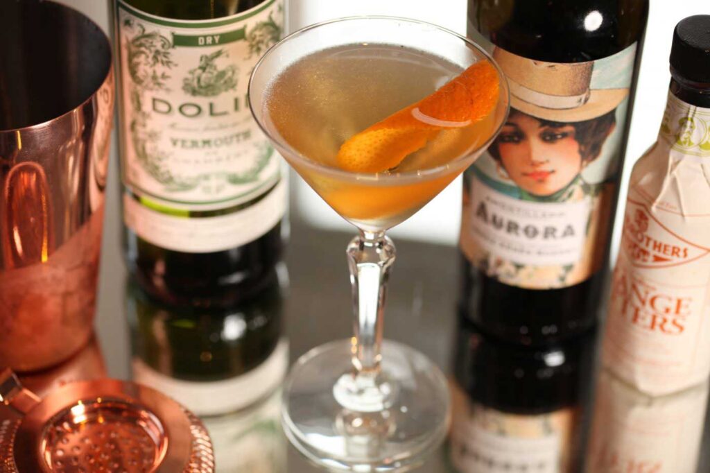 Love the blend of aged sherry and super dry white vermouth. In this classic sherry cocktail, I have used Aurora Amontillado which carries a pungent and penetrating bouquet of hazelnuts, burnt caramel and wood notes of pleasant complexity. The dry vermouth straightens the drink whilst the touch of sugar syrup and orange bitters balances the drink to perfection.