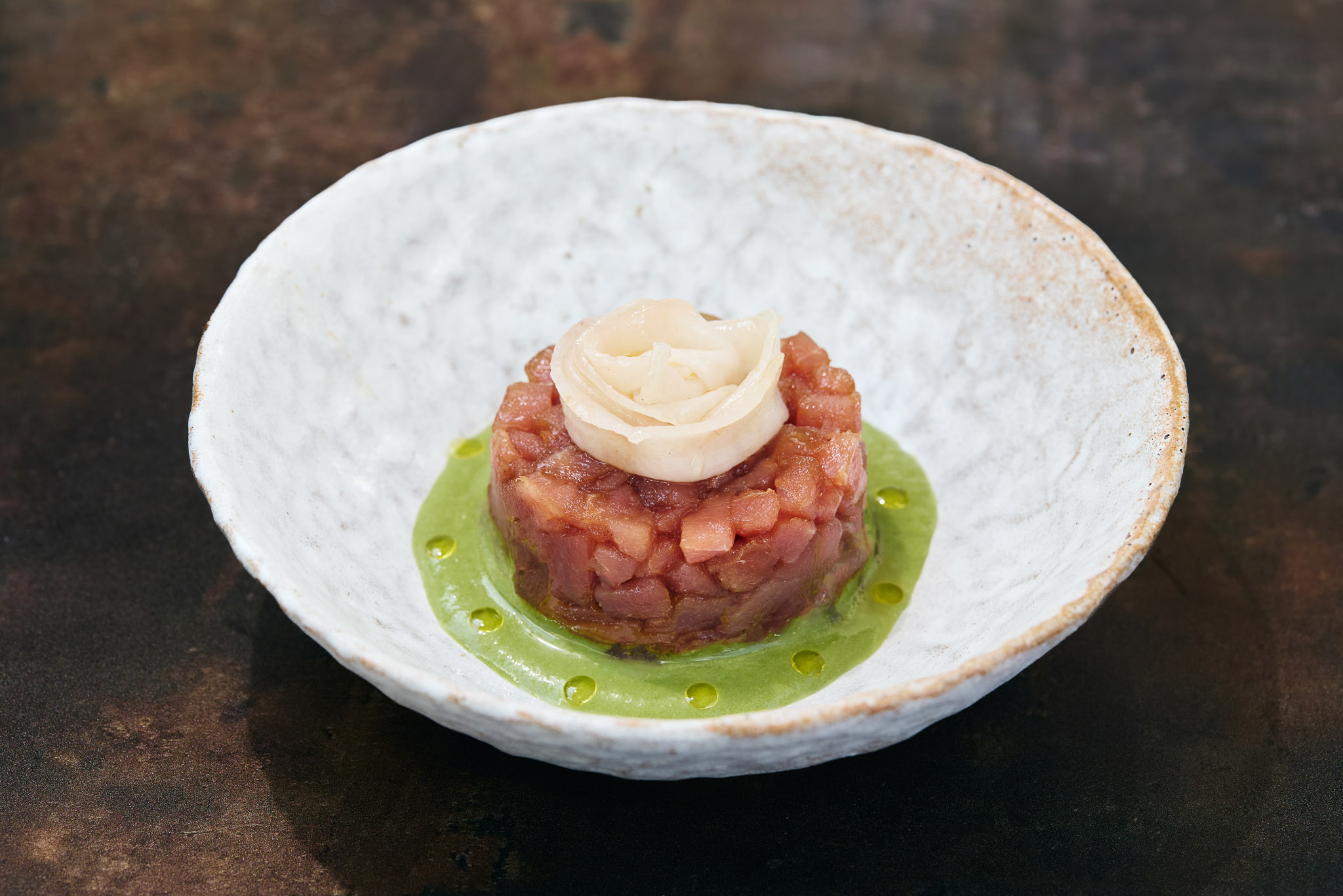 This easy tuna tartare recipe is fresh and sophisticated, making it the perfect starter for entertaining. The tuna is sliced into cubes and mixed with extra virgin olive oil, a touch of sesame oil and soy sauce and served with a delicious avocado and lime gazpacho and topped with thin slices of melt in the mouth guanciale ibérico.
