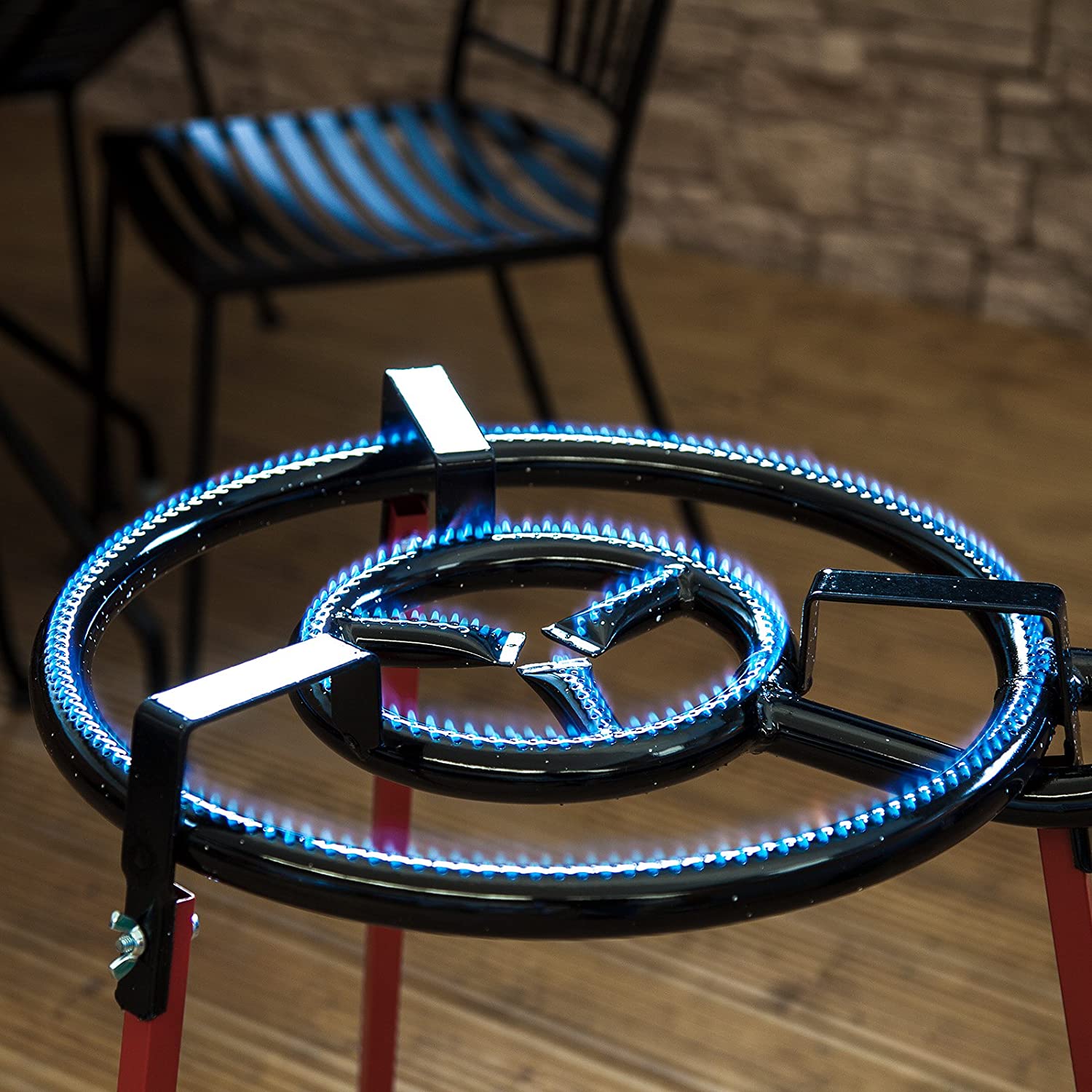 All you need to get paella cooking is a CE approved fuel hose and suitable regulator for the fuel you want to use. The burner will run on either propane or butane and has been manufactured and adjusted to UK fuel pressures and fully CE licensed. Our paella cooking set works with either butane gas 28-30 mbar or propane gas 37 mbar. The interior diammeter of the hose should be between 6 and 8mm.