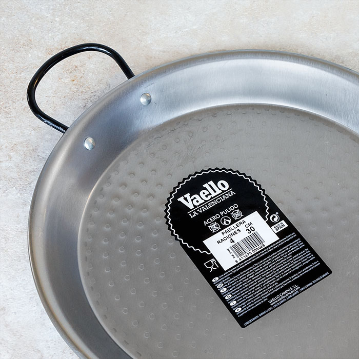 Vaello La Valenciana paella pans are made from polished steel. This is the authentic paella pan used to make traditional Valencian paella. Easy to clean and maintain, our paella pans come with 2 handles which are ergonomically designed for maximum cooking comfort. Please ensure you towel dry your paella pan after washing and rub some oil on it to prevent any rust from appearing.